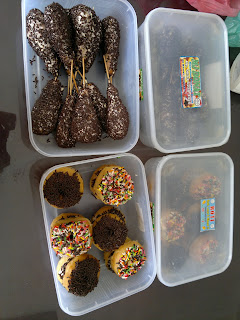 Sumbangan makanan, seperti 50 nasi padang, 50 nasi goreng, kue donat dan air minuman juice.