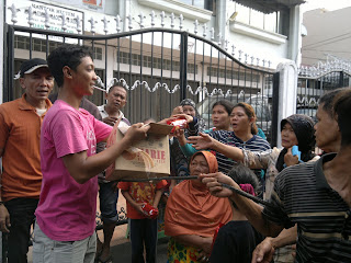 Pembagian paket sembako kepada 200 kk warga prasejahtera kota Medan di Accurate Charity Center.
